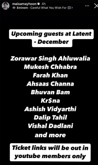 Samay Raina took to his Instagram stories to reveal Kusha Kapila's ex-husband Zorawar's name as one of the guests on the judging panel slated to appear on the show India’s Got Latent